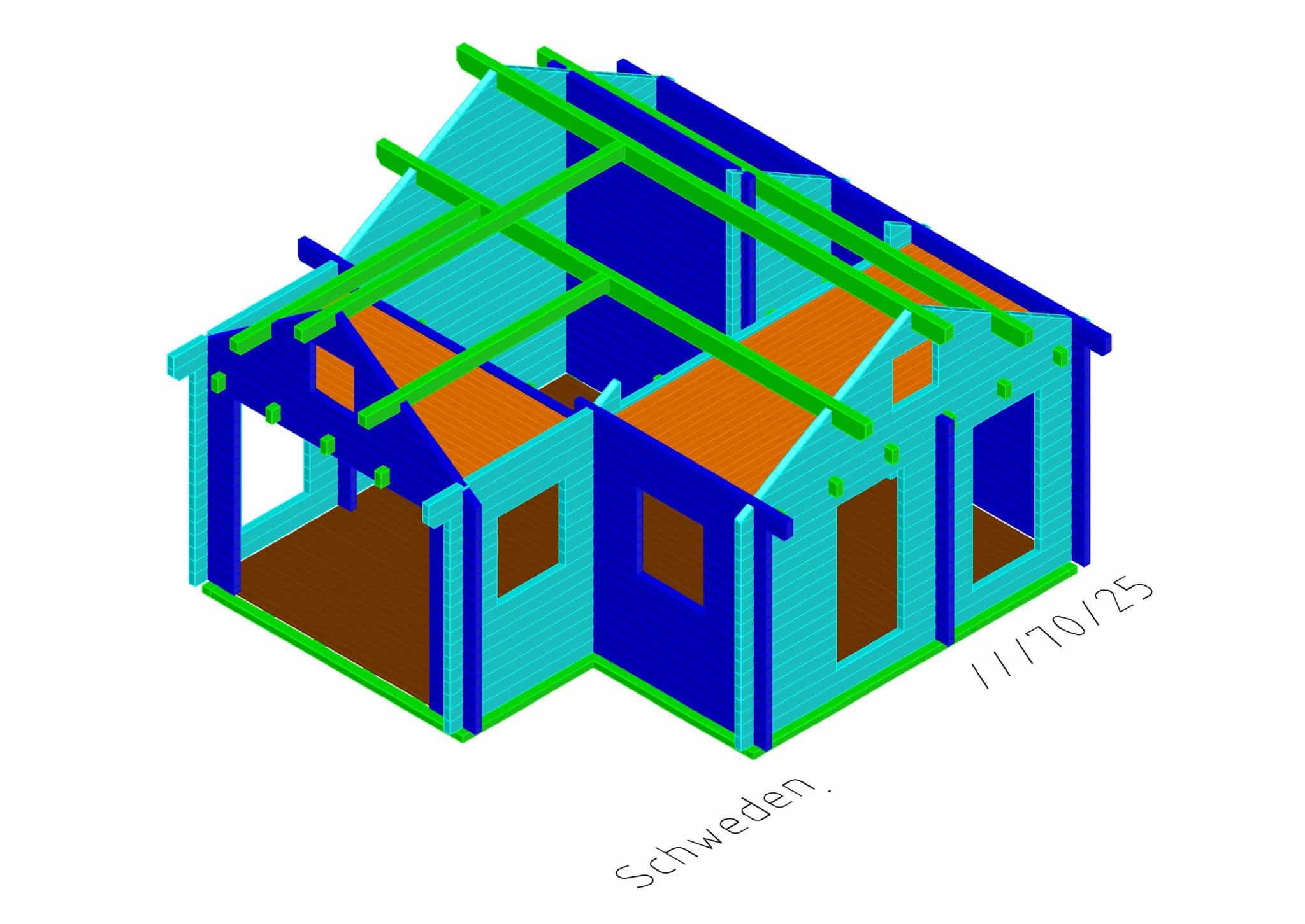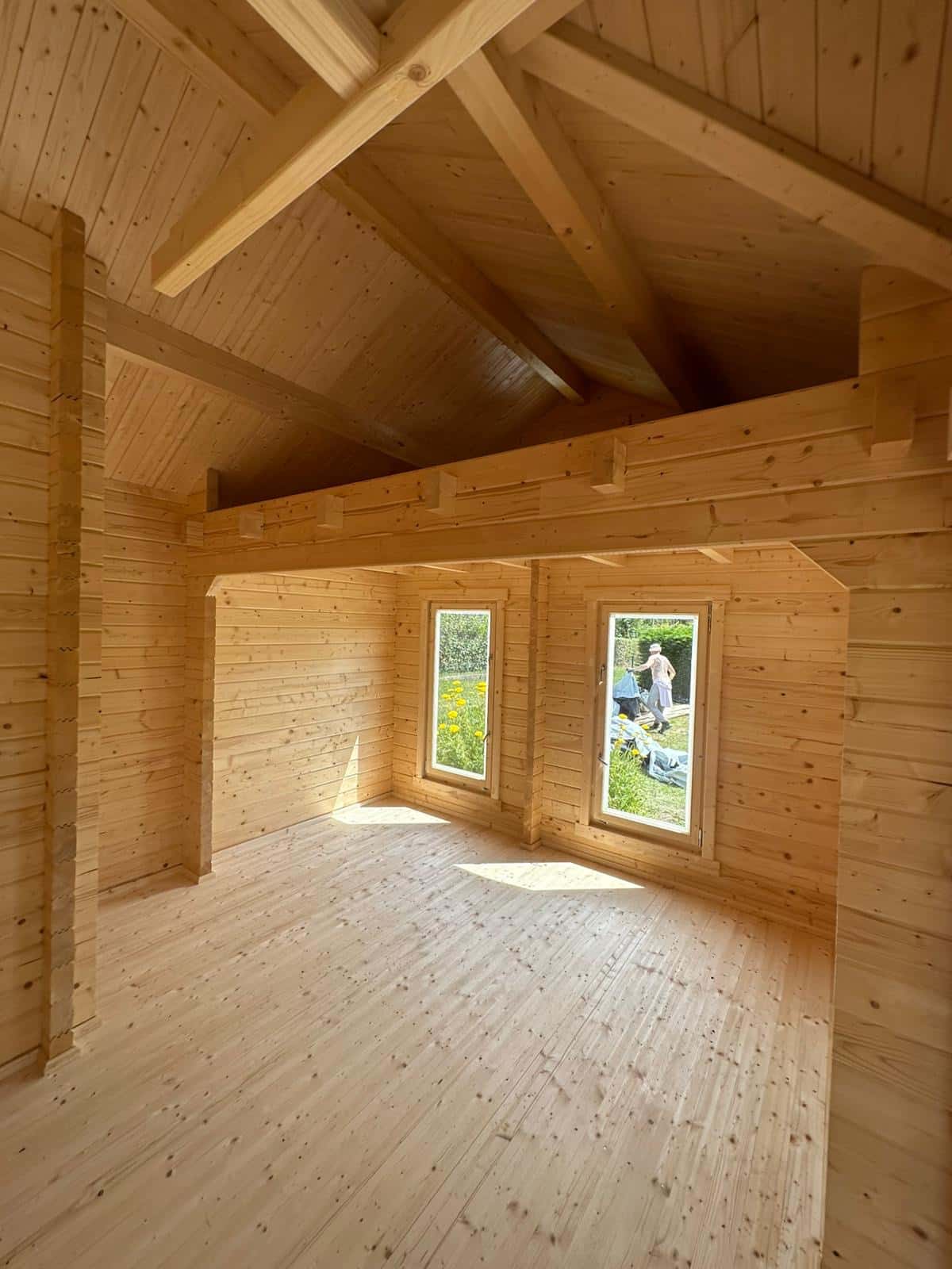 We recently realized the “Sweden” model for one of our customers – a compact yet spacious sleeping loft house with a floor area of around 24 m². It was built using robust log construction, with a choice of 50 mm or 70 mm wall thickness. This construction method not only gives the building stability, but also the typical, warm wooden character.