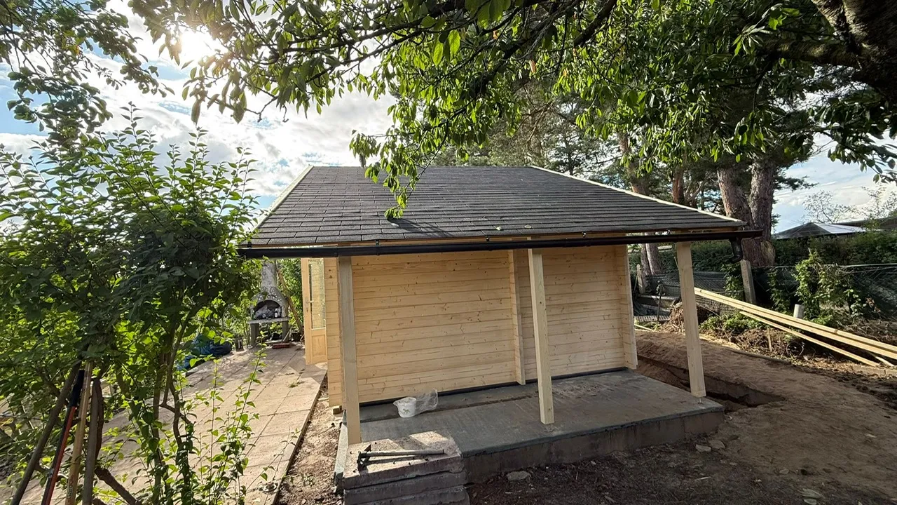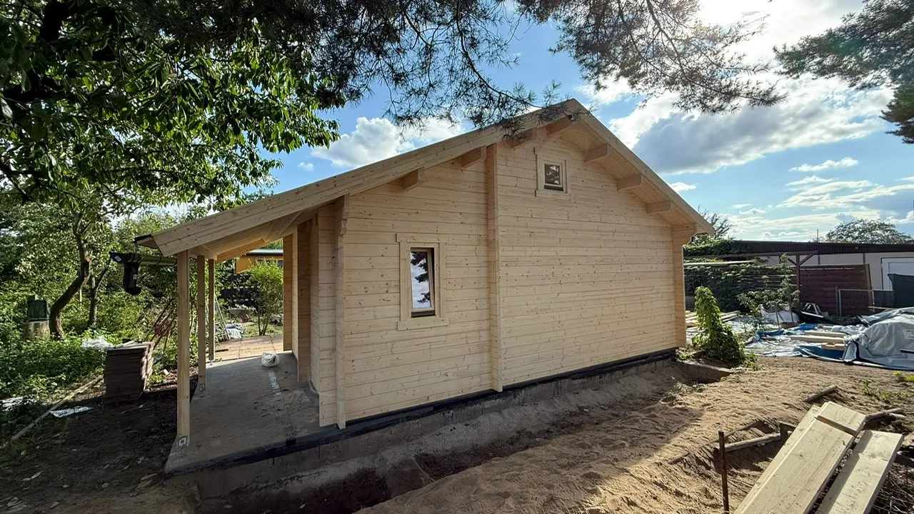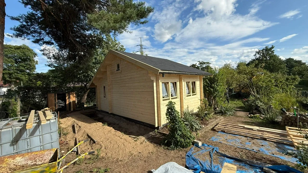 - Ein kompaktes Gartenhaus mit Schlafboden und optionalem Geräteraum – ideal für Besuch, Übernachtung oder Hobbynutzung. Das Bodensee-Modell bot dafür die perfekte Basis: solide Holzbauweise, klare Proportionen, flexible Raumgestaltung und ein wohnliches Raumgefühl. Die einfache Erweiterung mit Deluxe-Fenstern unterstreicht den Anspruch an Qualität und Komfort.