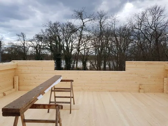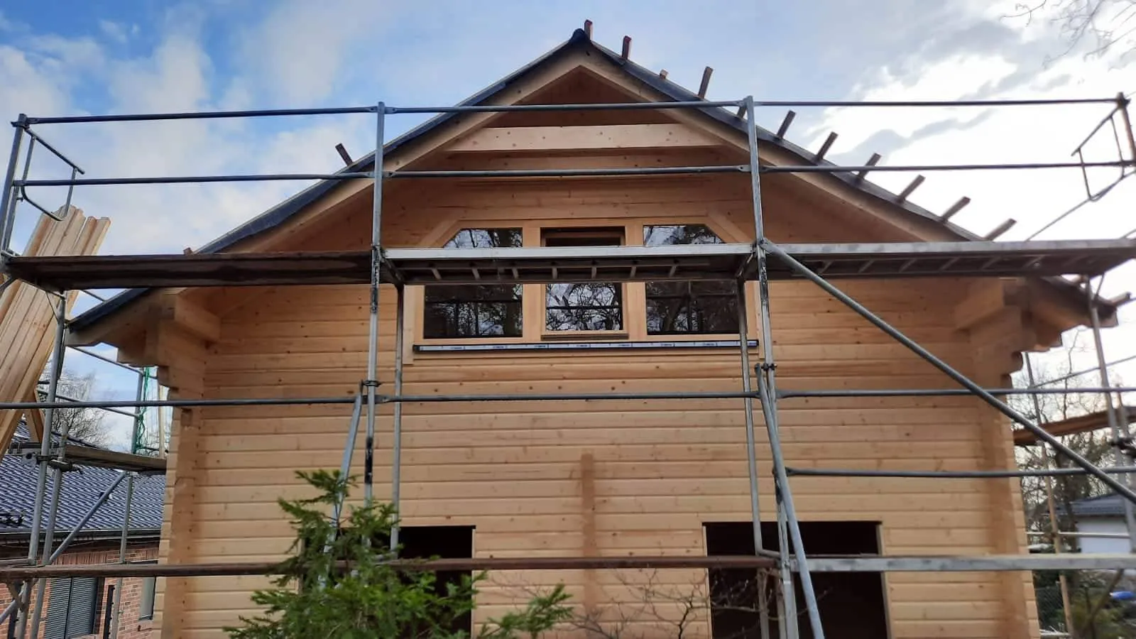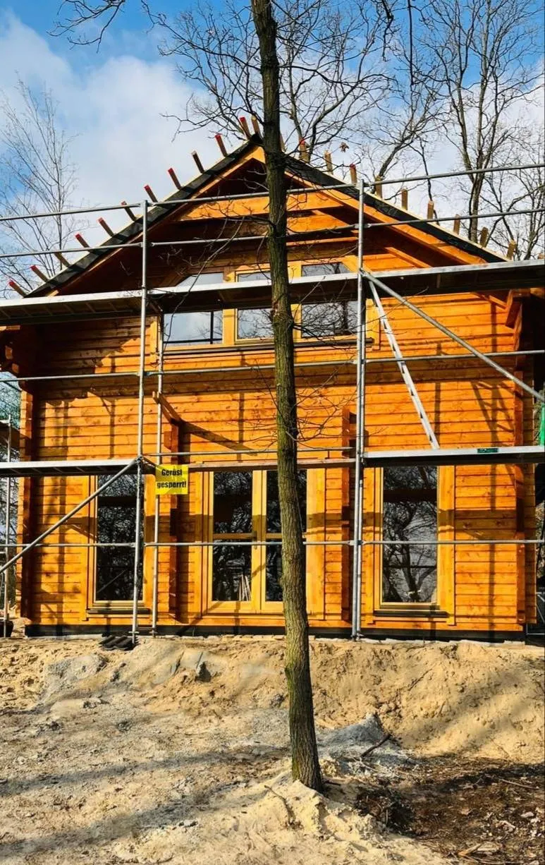 Mit einer beeindruckenden Firsthöhe von 5,70 m wird es aus Blockbohlen mit doppelter Nut und Feder gefertigt, die in Stärken von 70 mm oder 94 mm verfügbar sind.